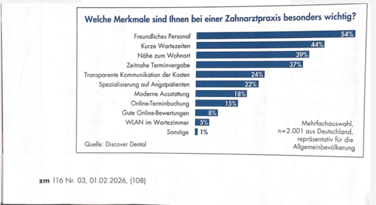 Auszug aus einer Umfrage: was ist Ihnen als Patient in einer Zahnarztpraxis wichtig.